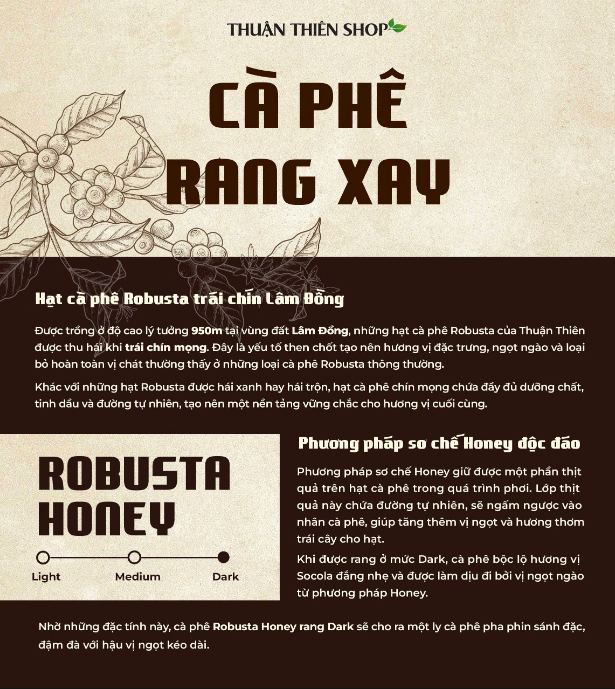 🌟Cà phê rang xay Robusta Honey của Thuận Thiên Shop được chế biến trái cà phê Robusta chín mọng,